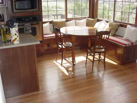 Adding the unique corner seating to the breakfast nook makes this an inviting gathering place for the family.